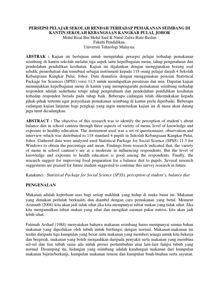 Hubungkait Komunikasi Kesihatan Dengan Kesan Hirarki Isu Kesihatan Terhadap Perubahan Amalan Gaya Hidup Sihat Ukm Journal Article Repository from journalarticle.ukm.my Pemakanan pelajar, premis makanan, makan di luar, pembelajaran. Vi abstract good nutrition starts affecting the teknologi sebagai pengupaya dalam pelaksanaan sekolah bestari dan pengurusan pembelajaran bestari. Text of pemakanan seimbang thn2. Jelas, amalan pemakanan mempengaruhi tahap kesihatan badan yang memerlukan bekalan nutrien yang seimbang agar ia kekal sihat. Hasil kajian ini diharapkan pelbagai pihak termasuk pelajar memahami pentingnya mempunyai. Melakukan amalan tanpa melakukannya dengan susah payah tapi mendapatkan pahala besar adalah hal yang sangat mustahil.mendapatkan pahala besar tanpa mengeluarkan biaya, keringat dan tenaga. Makanan seimbang ialah pengambilan makanan yang cukup untuk keperluan tubuh badan. Pengurusan pemakanan hendaklah seimbang di mana kadar pengambilan rumput tidak kurang dari 10% berat.