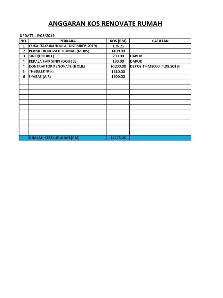 Apabila anda berencana untuk merenovasi rumah anda segera hubungi kami untuk konsultasi. Inginkan suasana rumah yang berbeza tetapi masih belum berkemampuan untuk membeli rumah yang baru? Nak tahu kat mana anda boleh berjimat. Kebanyakkan rumah jenis apartment atau flat ni ada masalah dengan tekanan air rendah.nak mandi air mengalir perlahan je.nak mandi mana puas macam tu.masa terbuang lama dalam bilik air. Pembangunan rumah baru, membangun ruko, membangun rumah kost/kontrakan, meningkat rumah, menambah ruangan dll. Lalu, anda memilih sistem pembayaran borongan. Renovasi rumah minimalis type 45 menjadi 55 dengan luas tanah 95m². Cara kira kos renovate rumah teres dan kampung berkongsi via hiasanrumahteres.blogspot.my. Jadi sebenarnya, berapa bajet renovate rumah yang kena ada? Ni la haaa rumah kitorang. Renovation rumah shah alam, setia alam, klang, subang jaya. Kami berjaya membeli rumah pertama kami secara cash rm50 ribu dan total cost yg kami telah keluarkan. Savesave anggaran kos 6.08.2019.pdf for later.